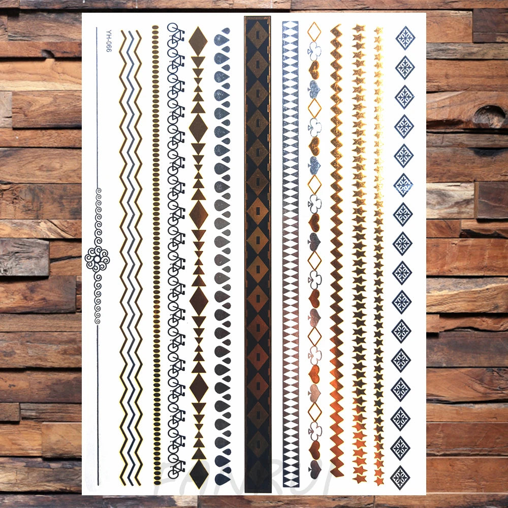 Who It's For and How to Use: Golden Glimmer Tattoos are ideal for anyone looking to enhance their style with a touch of golden elegance. Whether you’re dressing up for a special event, enjoying a festival, or simply want to add a bit of glamour to your everyday look, these tattoos are your go-to accessory. To apply, clean and dry the desired area, cut out the tattoo, press it face down on the skin, and wet it thoroughly. Peel off the paper backing to reveal your stunning new tattoo. To remove, simply use baby oil or rubbing alcohol.